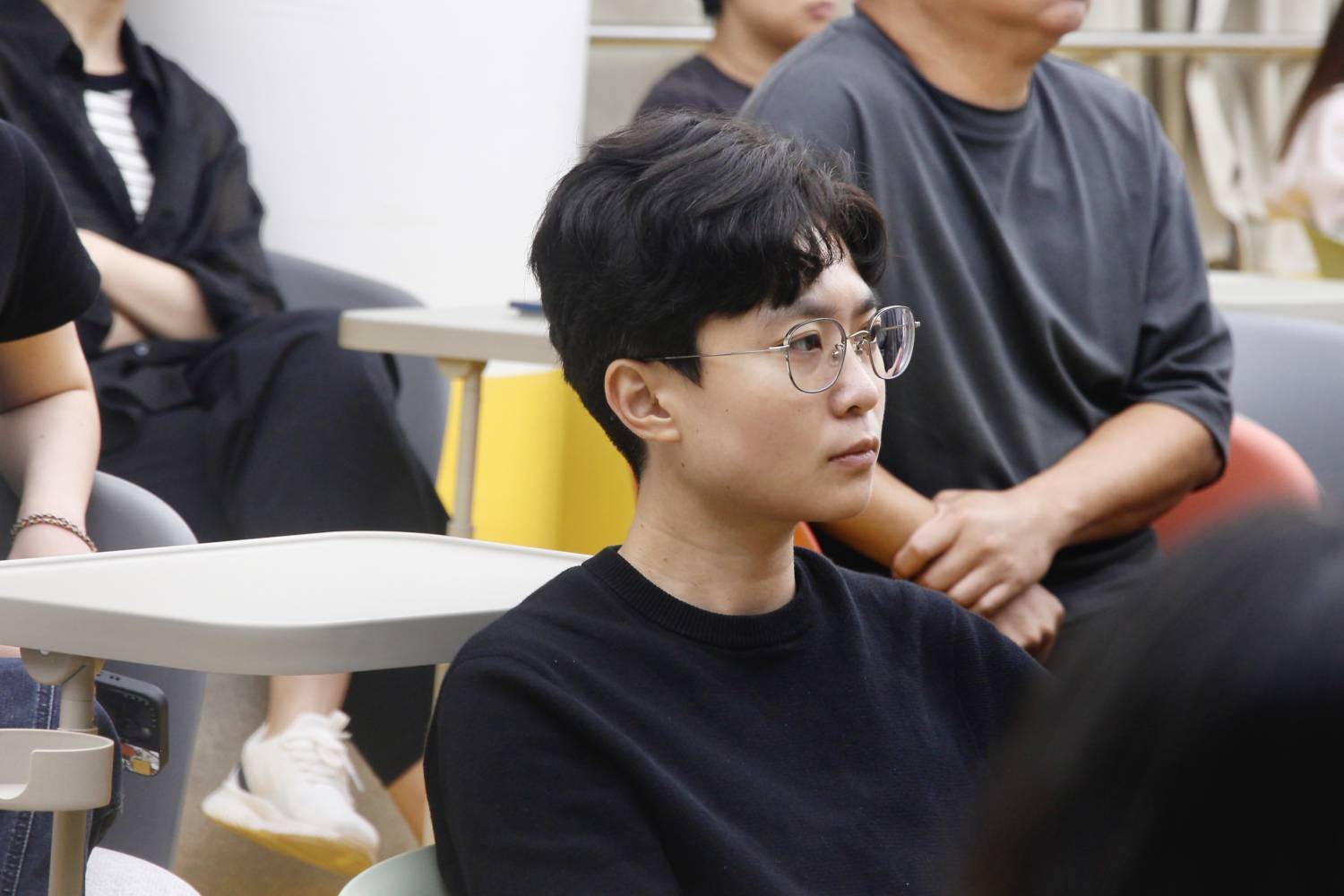 黃英峰開場時分享,《我們六個》的劇本歷經超過三年田調,其原型故事源於多年前駭人聽聞的「電鍋殺人案」。如何轉化負面、驚悚的題材,是團隊面臨的首要挑戰。他在現場播放首播預告片後,有同學坦言,因看過案件原型故事,衝擊過大而沒有意願收看。黃英峰回應,這也是團隊設計三套不同敘事角度預告的原因,以回應觀眾對沉重議題的複雜情緒。